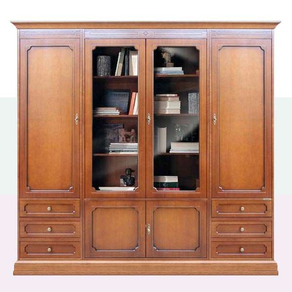 Bellissima libreria. Un mobile di grande piacevolezza che non ci si stanca di ammirare. La sua fresca classicità parla di un lavoro di ricerca indirizzato alla funzionalità senza perdere di vista l’aspetto dello stile spinto ai suoi massimi livelli. Un mobile che oltre all’indiscussa utilità, racchiude nella sua struttura elementi di grande valore, tutti insieme. La perfetta laccatura lascia spazio, internamente, alla naturalezza della verniciatura che esalta il calore delle tonalità del legno, del vero legno! Due ante raffinate ed eleganti catturano l’attenzione grazie ad un motivo stilizzato ricavato per incisione su un sottile strato di legno di tiglio, valorizzato dalla finitura in foglia oro. La presenza della serratura sulle ante è evidenziata da una bocchetta con chiave rifinita in bagno oro per una inalterabilità garantita per sempre. Un bellissimo mobile, fiore all’occhiello della produzione “Arteferretto”, creato apposta per brillare in casa vostra. Dimensioni: Altezza 193,5 cm Larghezza 104 cm Profondità 34,5 cm Dimensioni vano: Larghezza 92,6 cm Altezza 128 cm (divisibile in 4 vani con altezza minima 24 cm e massima 35 cm) Profondità 30 cm Dimensioni vano interno porte: Larghezza 92,6 cm Altezza 44 cm Profondità 30 cm
