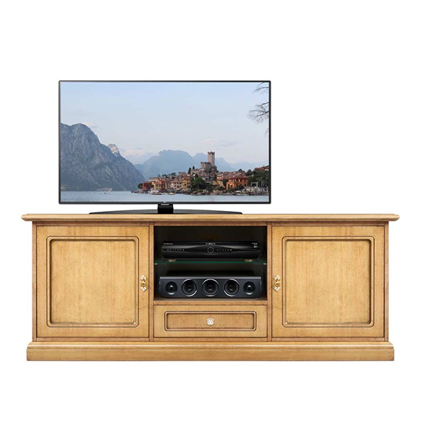Mobile porta tv basso dallo stile elegante e raffinato. Un pregevole manufatto artigianale che riesce a trasmettere l’essenza del vero legno.Le sue dimensioni consentono di offrire grande praticità e funzionalità, senza tralasciare l’impeccabile gusto estetico. Perfetto anche per i televisori più grandi.La graziosa modellazione della parte bassa e dei piedini, alleggerisce con classe l’intera struttura molto capiente e robusta.Centralmente il mobile presenta un utile vano a giorno e un cassetto arricchito da un bellissimo decoro stilizzato. L’aspetto funzionale viene infine completato dai 2 spaziosi cassettoni disposti lateralmente.Le vivide venature del legno impreziosiscono l’intero aspetto del mobile donano un tocco di naturalezza e inestimabile bellezza.Dimensioni:larghezza 280 cm;profondità 45 cm;altezza 61 cm.