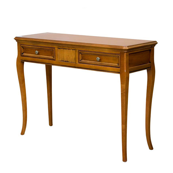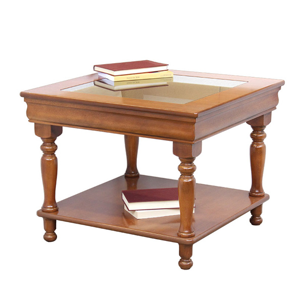 Tavolino rettangolare caratterizzato da lavorazioni che, con linee semplici, esaltano la bellezza e la compattezza del legno massello di tiglio e toulipier. Le belle lucidature di tipo classico, che si tratti di tinta ciliegio, noce o bassano, grazie alla loro patinatura esaltano le belle linee dell'originale lavorazione e dell'intarsio che contorna il piano in cristallo molato. Un oggetto di grande stile e di alta classe. Dimensioni: Larghezza 120 cm; Profondità 60 cm; Altezza 45 cm.