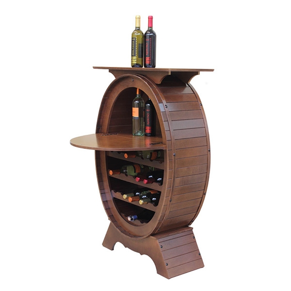 Mobile portabottiglie molto raffinato e curato in ogni particolare.La funzionalità è stata studiata per fornire, oltre al corretto collocamento delle bottiglie, anche quelle comodità che solitamente altri mobili non hanno.Questo prodotto è il risultato di una serie di indicazioni fornite da collezionisti di vini, ristoratori, enoteche e tutte quelle persone che ritengono importante disporre di un mobile funzionale per esprimere il loro apprezzamento per l'enologia.La parte inferiore ospita 23 bottiglie mentre la parte superiore può essere utilizzata come vano bar per contenere, oltre ad alcune bottiglie, anche una serie di bicchieri e calici.L'anta di questo vano si apre a ribalta diventando un utile piano d'appoggio che, unitamente a quello superiore, offre una comodità d'uso introvabile in altre tipologie di mobili portabottiglie.Il piano superiore può, inoltre, fungere da originale vassoio o, a scelta, essere fissato all'intera struttura.Dimensioni: Larghezza 74 cmAltezza 119 cmProfondità 32 cm