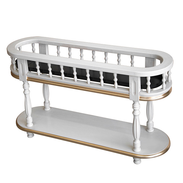 Raffinata panchetta dalla bella linea stilizzata. Un elemento d'arredo che dona alla zona notte un tocco di utilità e classe d'altri tempi. Il telaio è impreziosito da un profilo elegante e sinuoso, valorizzato dalle minuziose lavorazioni intagliate sul legno. La graziosa silouhette si accompagna alla solida imbottitura accuratamente rivestita da un tessuto di alta qualità. Il tocco finale è dato dalla passamaneria borchiata che fa da raccordo tra telaio e tappezzeria. La configurazione in foglia oro valorizza ancor di più l'ammirevole estetica non facendola passare di certo inosservata. Collocabile accostata al letto, risponde ad alti canoni di eleganza anche in altre posizioni o altri ambienti. Articolo liberamente configurabile sia per tinta del telaio che tessuto dell'imbottitura. Il tessuto rappresentato in foto potrebbe non essere disponibile, contattaci per informazioni. Dimensioni: larghezza 106; profondità 56; altezza 45.